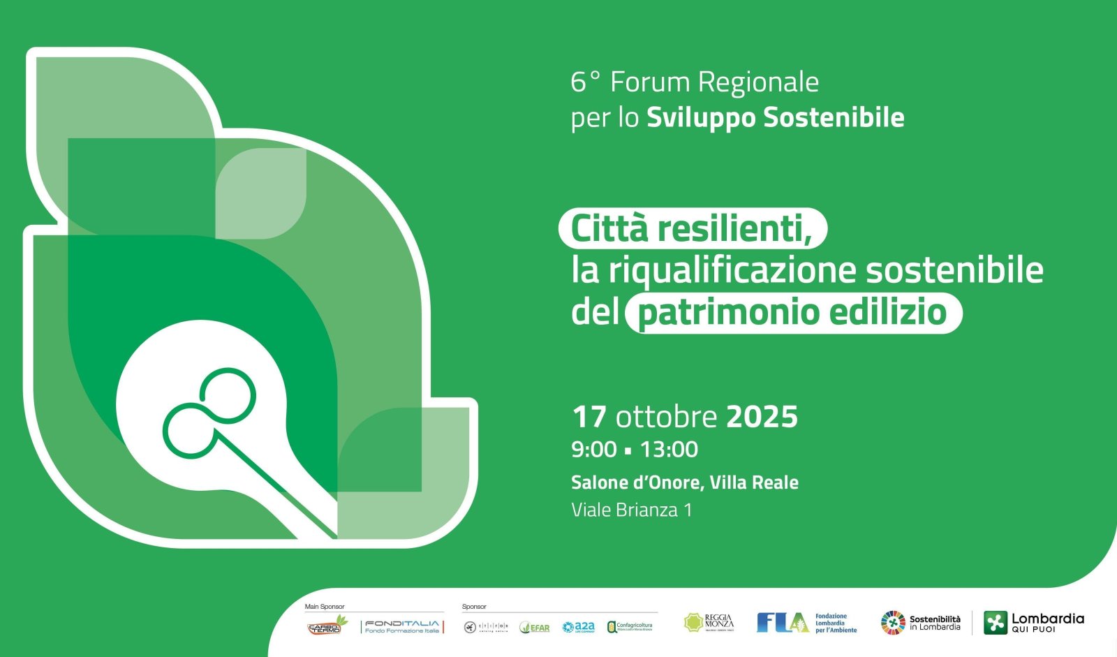 Il sesto Forum regionale per lo Sviluppo Sostenibile 2025 promosso da Regione Lombardia e intitolato quest’anno “Transizione climatica: la nuova strada della Lombardia”, fa tappa a Monza domani, 17 ottobre 2025 (ore 9:00 – 13:00) con l’incontro dedicato a “Città resilienti, la riqualificazione sostenibile del patrimonio edilizio” alla presenza di Giorgio Maione, assessore regionale Ambiente e clima.